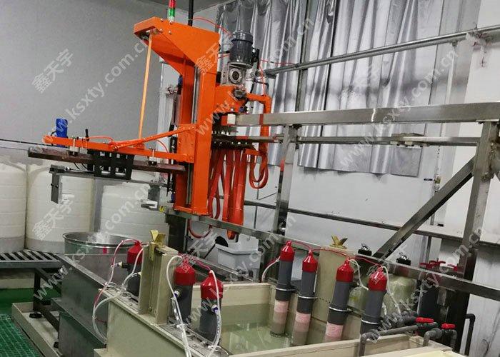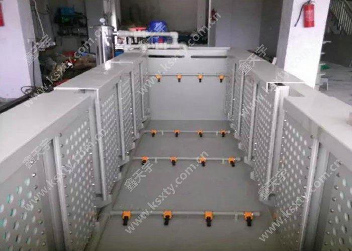 槽體采用PVC塑料或PP純塑板槽。電泳槽體應(yīng)由二部分組成;主槽(工作槽),溢流槽(加料槽),另外應(yīng)配備循環(huán)過濾系統(tǒng)級加熱,冷卻及溫控系統(tǒng),溢流槽的寬度約為主槽的1/6,便于安裝加熱,冷卻管。為了防止涂料沉淀,電泳主槽底部采用斜面設(shè)計(jì)。